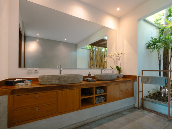 The 4 almost identical bedrooms offer a king-size bed, walk-in closet, full ensuite bathroom with shower and terrazzo bathtub. The choice is yours, choose between the ground floor where bathrooms are open-air although very private, or the upstairs bedrooms with enclosed bathrooms for ultimate privacy.